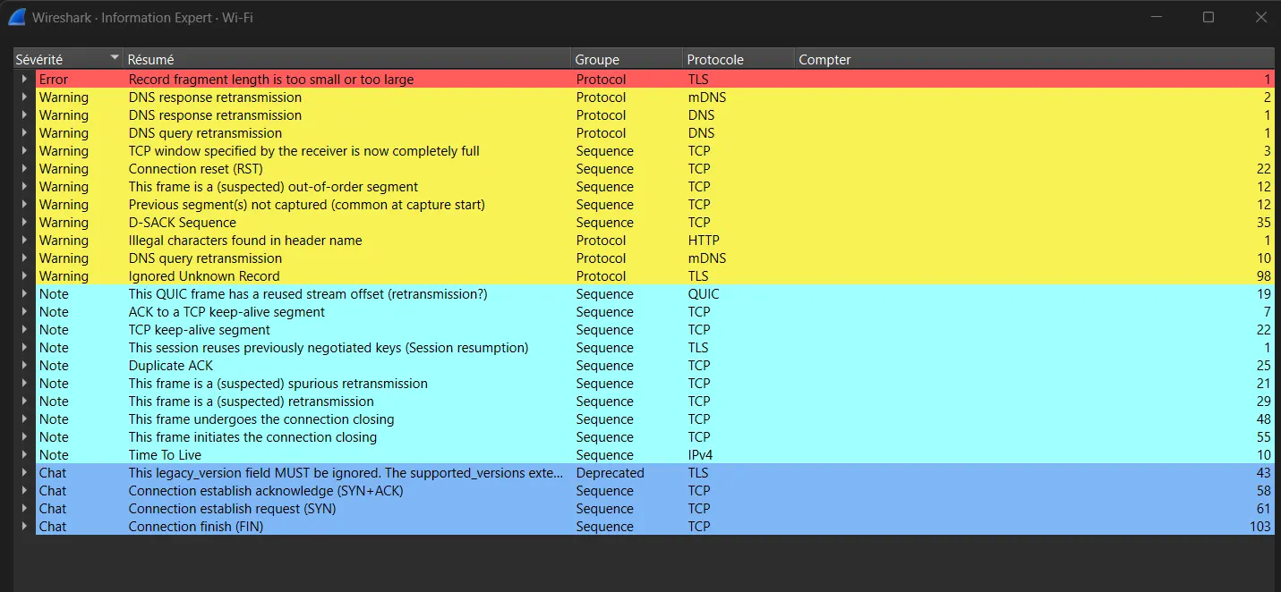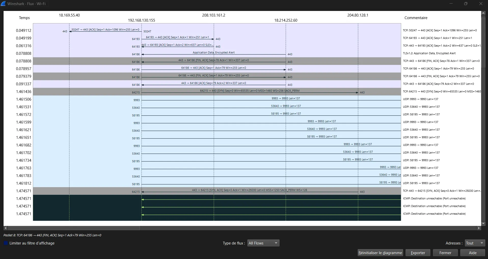 Attention, cette approche atteint rapidement ses limites. Dans une capture réseau, il est rare de n’avoir qu’une seule conversation active ; d’autres communications peuvent venir perturber votre analyse. Dans ce contexte, l’ordre des paquets dans la capture ne correspond pas toujours à celui attendu, rendant l’interprétation plus complexe.