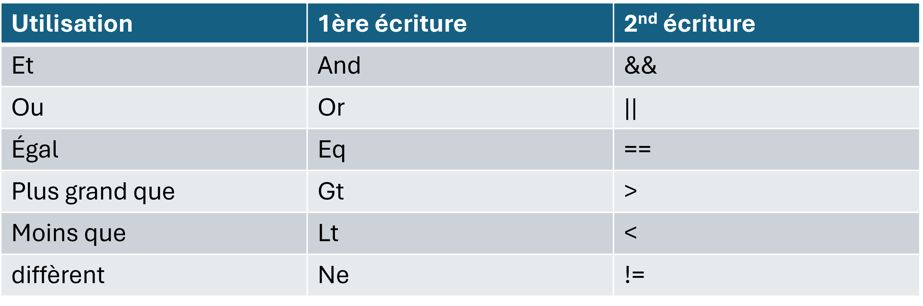 Dans les règles de filtrage, on peut utiliser différents opérateurs pour affiner les recherches.
