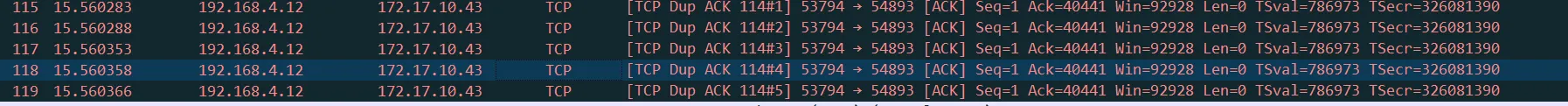 Avec TCP, les paquets perdus sont automatiquement retransmis et apparaissent comme dupliqués dans les logs.
