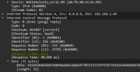 L'information du temps de réponse est directement visible dans les details du paquet.