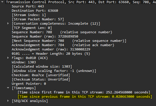 L’indicateur TCP Delta Time est alors utile, car il permet de suivre la latence d’une communication TCP spécifique, sans se baser uniquement sur le paquet reçu précédemment.